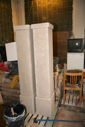 Konstrukčně jsou jednotlivá zastavení stejná, osazena na betonovém základě. Materiálové provedení je v umělém kameni, který je povětrnostně odolnější než přírodní kámen. Sloupy vyrobila firma Kamenické práce pana Jiřího Zimovčáka v Brně. Základy se podařilo vybetonovat ve středu 21. března a osazeny byly v úterý 27. března 2012. Stavba křížové cesty byla dokončena v pondělí 18. května 2015 tím, že do výklenků jednotlivých zastavení umístil obrazy 14 zastavení sám jejich autor – výtvarník Milivoj Husák.