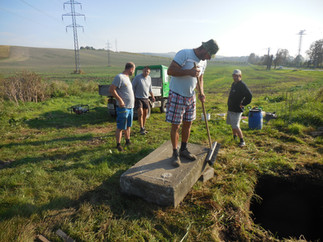 Vyhloubení a vybetonování základů pro obnovený kříž.